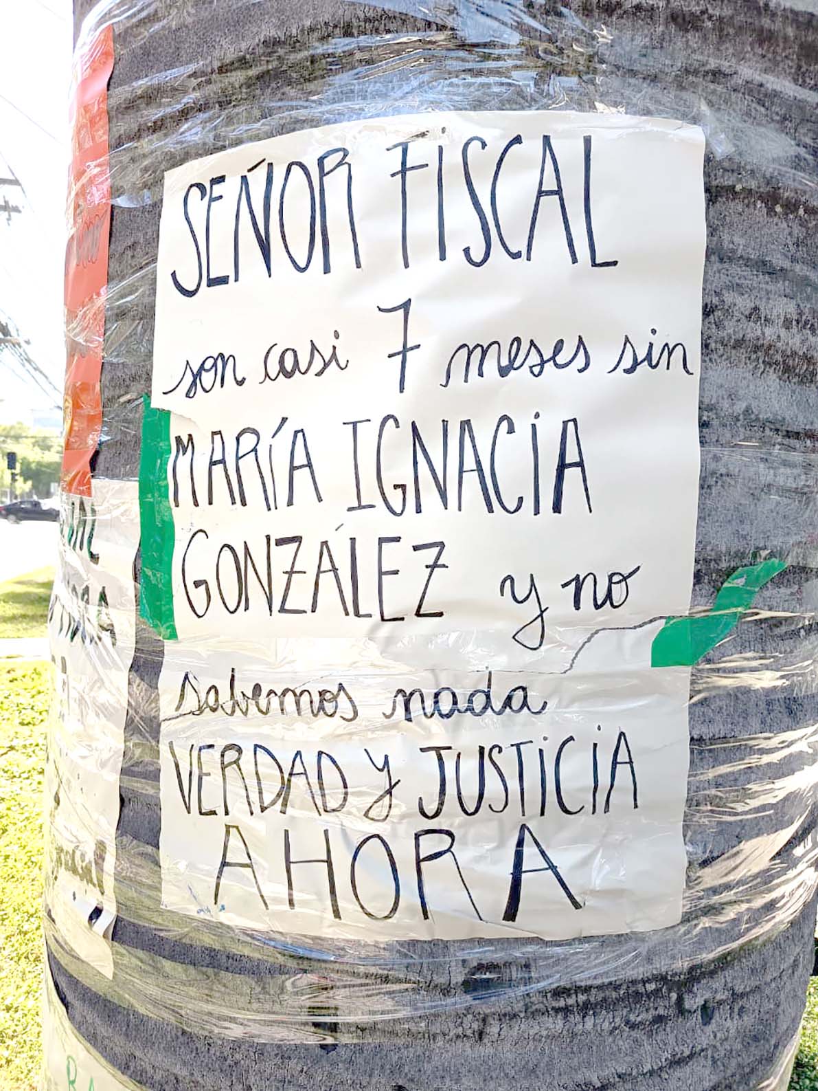 TALCA. La mañana de ayer, la comuna de Talca amaneció con afiches alusivos a la búsqueda de la desaparecida concejala de la comuna de Villa Alegre, María Ignacia González, el pasado 15 de junio. Tras casi siete meses sin conocer novedades de su paradero, la indignación de la comunidad se volvió visible en la capital maulina gracias a pancartas expuestas en la vía pública y que claman por justicia.