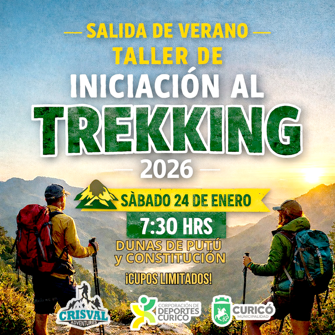 CURICÓ/CONSTITUCIÓN.  Con el objetivo de fomentar la vida activa, el contacto con la naturaleza y la recreación familiar, el sábado 24 de enero se llevará a cabo un taller de iniciación al trekking, actividad deportiva y recreativa abierta a la comunidad, teniendo como destinos principales las Dunas de Putú y la comuna de Constitución, reconocidas por su riqueza natural y paisajes únicos. La jornada, que se desarrollará en modalidad Full Day, está pensada como una experiencia formativa y recreativa, ideal para quienes desean iniciarse en el trekking de manera segura y guiada.
