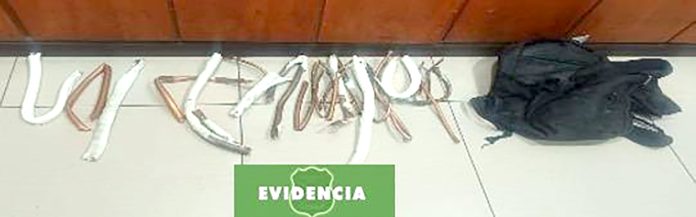 El comisario puntualizó que los efectivos revisaron “una mochila que el tipo portaba, encontrando gran cantidad de tubos de cobre”, los cuales servirán como medios de prueba para una eventual formulación de cargos.