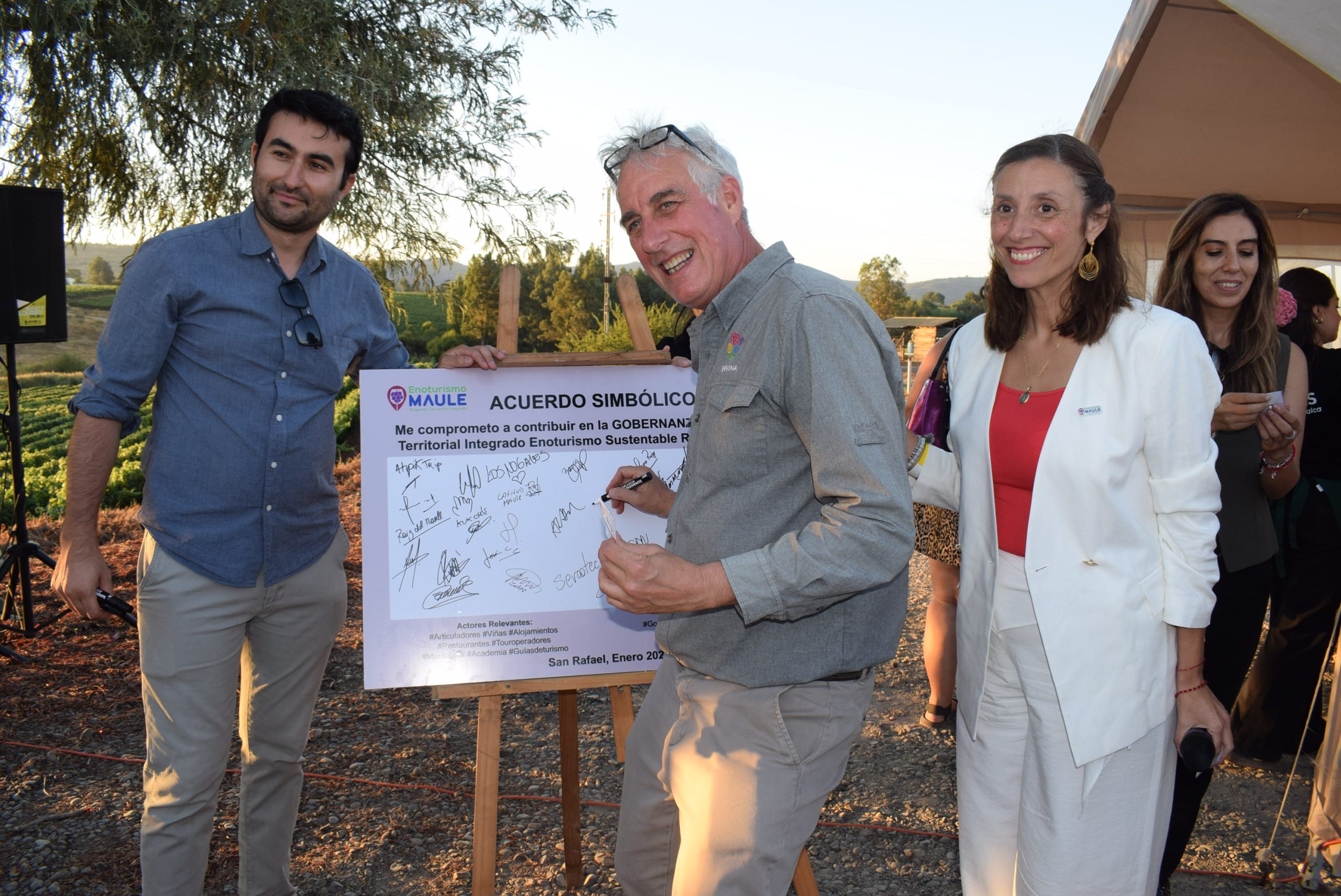 Luego del maridaje, se procedió a firmar un compromiso simbólico, que fue firmado por las autoridades presentes y personas que estarán involucradas en el programa, tal como lo hizo el propietario de la Viña Invina, Alex Huber.